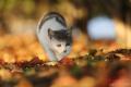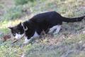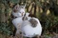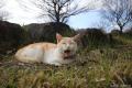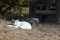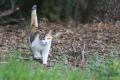 古墳の公園で、トラちゃん、三毛ちゃん。