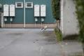 古墳の公園近く、道沿いのお宅。塀の切れ目、かつては開き戸でもあったふうな金網。