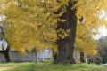 望遠一本勝負だと、どんなに後退しても大銀杏の全容は撮れない。
