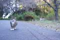 落ち葉の絨毯を颯爽と走る猫。