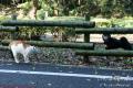 秘密の猫道を登ったら誰もいなかったのだけれど、黙って待っていたらぞろぞろ現れた。 ワカちゃんの後ろからセレブ。