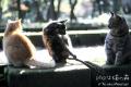秘密の猫道で食後の日向ぼっこをする (手前から)ワカちゃん、キンメ、ヒミケ。(ヒミケはもう認識できませんね)