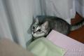並んで寝ていたけど、起き出したかぎしっぽと、奥で寝ているまーちゃん。 ツーショットと言うにはかなり苦しい。