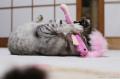 ちぃはクリスマスにBOOさんからいただいたピンクのヘビさんで遊んでいます。