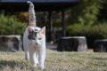 巨大なしっぽを持った茶トラ白ちゃんです。