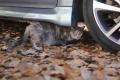 この寒さでもまだベランダ猫している。「ごわんが帰って来た!」と、すっ飛んで降りてくるので運転席から撮影。