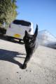 おっと、道路脇にイカシタ黒猫さん。襟に白いワンポイントがステキ。