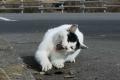 西の黒猫さんのところに最近白猫がいるというので行ってみました。 ちょうどおばあちゃんに食事をいただいている時で。