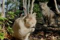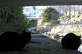 秘密の猫道から出てきたのらくろ(前)とブチ(後)。 (どちらの顔にもピントが合っていないという…汗汗)
