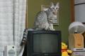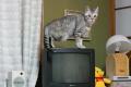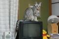 テレビの上に猫の置物。