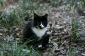 白と黒といえば、ひとりで白と黒なみーチビ。 枯れ葉にじゃれてました。