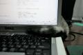 ふと気がつくとキーボードの上に黒いモップが。(左下)