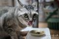 一足先に夕食を済ませたちぃはとーちの食事が終わるのを待っている。