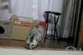 帰宅するとダンボールとシャカシャカ通り抜け袋が妙な配置。 そこをくぐり抜けて遊んだのか?