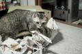 新聞紙をくしゃくしゃ丸めてダンボール箱に入れておくと ちぃが掘り掘りして出します。安上がりなおもちゃだなぁ。