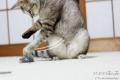 食後の運動、猫じゃらし遊びです。(とーちは夕食前だがね)