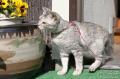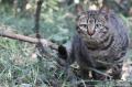 植え込みから顔を出したさばすけ。