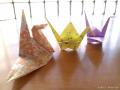 みんなで鶴を折っているので、オレもひとつn十年ぶりに折ったら、ひとつだけ違った姿になった。(汗