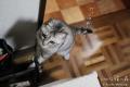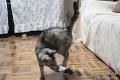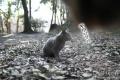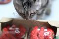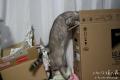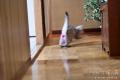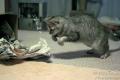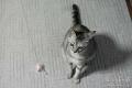 自分で置いたねずみさん。ちょうどよい距離までさがって、さあ!ひとりねずみ狩り遊びの始まりです! のちぃちゃんでした。