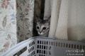 耳が外に向くと顔が細おもてになります。猫相変化。 このあとカゴを飛び越えるんだけど、飛ぶ準備なのかな。