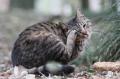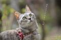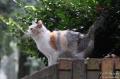 また数分のインターバル後、散歩するにゃん♪ 屋根の雀さんが気になって、キンモクセイに登ろうとするちぃ。