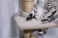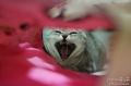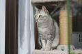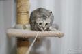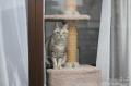 キャットタワーで遊んでいると、すごく窮屈そうな体勢になることがある。