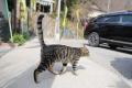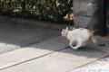 ウチの前の道ですが、尻尾の短いブチさんと、昨日のお客様、三毛ちゃんも顔を出しています。