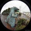 職業支援センター入り口に、何故か、怪獣。