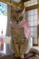 首の、喉のあたりを掻きむしったらしくハゲていたのでスカーフしたら、なかなかイケてた。^^;