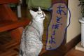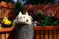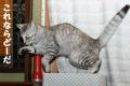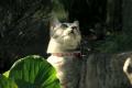 ガンちゃん。「この切り株テーブルの上におやつを置けニャー!」と言っている。