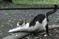 休日に猫を撮れないと欲求不満がつのるので、疲れた身体にムチ打って猫の森へ。 めずらしく母子が一緒にいるではないですか。ガンちゃんとチビクロ。