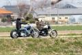 裏の木に来ている鳥を撮影しようと構えていたらバイクの2人が通った。 いいなぁ、自由の象徴。