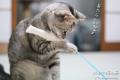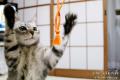 左手にじゃらし棒、右手にカメラ、
