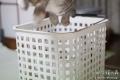 ダンボールの蔭に隠れているの。