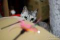 足でじゃらし棒を操ろうとしても、ちぃを夢中にさせるような動きは無理だし そんなことしてたら、あっ!指つった。いててす、いててす。