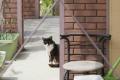 玄関前でご主人様の帰りを待つ団地猫。いつごろ帰ってくるのかね。