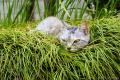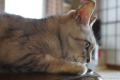 窓まで走って散歩の催促をするので出てみると、龍の髭のベッドでまったり。