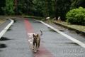 5月の最終休日は雨ですね。 傘をさして森へ行くと、みんな道路脇に並んで待機しておる。 左からちゃちゃ、みーたん、クマ、しずかちゃん、みーチビです。