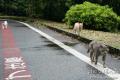 ちぃちゃんはリードをつけて庭を散歩ですが