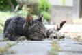 視線の先にはたまちゃんがいたのでした。 道路で寝ちゃダメでしょ、危ないからぁ。