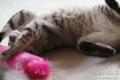 とーちが遊び疲れると、ひとりでじゃらし棒をくわえて遊んでいるのでした。