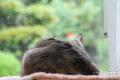 とーちが手を引っ込めると、普段あまりやらない毛繕いを始めるちぃなのでした。