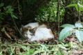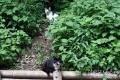 森のあずま屋裏です。草の背丈が伸びて道なき道になってます。 みどりさんが来てくれました。