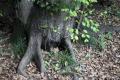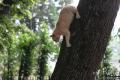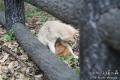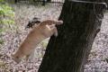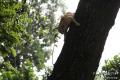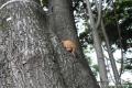 大きな切り株あたりで白いわんこが吠えていたので行ってみると 木の下にわんこ、上を見るとしずかちゃんが。 飼い主のおじさんがリードを持っているけど収める気はないように見えて、まずいじゃないかと思ったけど