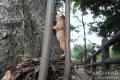「登りもしないうちから怒らなくたっていいじゃない。ちょっと鳥さんの声がしただけ、 脱走なんかしないわよ。だいたい逃げる時はとーちを撒いてからに決まってる。 今からダァーと走ればとーちはついてこれないのは分かっているけど、 あえてそうしない今日のあたしは脱走する気分じゃないのよねー。」