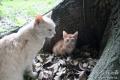 子猫が2匹。^^ 近づこうとすると隠れてしまうので大トリミングです。