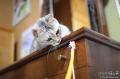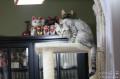 カーテンも白い、キャットタワーも白い、イースも白い、アンダーシャツも軽井沢シャツもみんな白。あはは