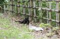 不二子ちゃんが道沿いで何かにじゃれて遊んでいた。