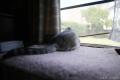 直射日光が熱い日は、本棚の上に待避。