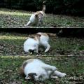 池のあずま屋西の丘に登ると、かぎしっぽが寝ている。 えー以上、申し訳ないが最近ビジュアル面で魅力薄なので掲載する機会が少なくなっている子たちでした。